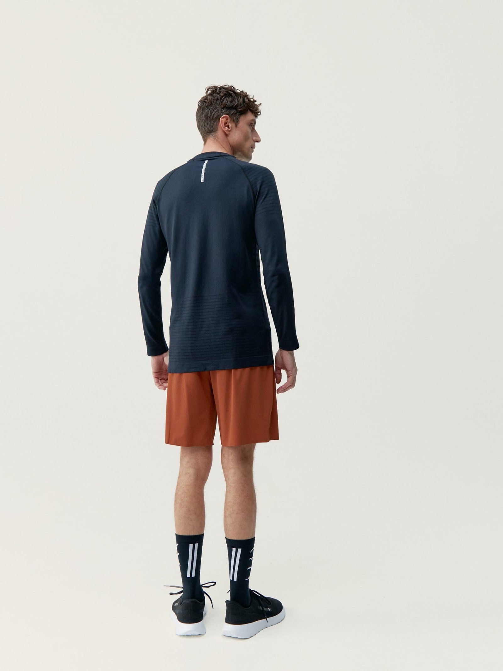 The Born Aral long-sleeved technical t-shirt is lightweight, made from comfortable 3D “Air_feel” technology fabric, with contrast textures allowing for greater breathability on the arms and back. It has a reflective band on the back for visibility.