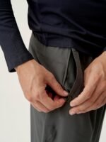 Joggers for sports and street-casual wear. Lightweight, stretchy and comfortable “Air_D” fabric, zipped side pockets, hidden pocket at back of waist. Zip at the base of each leg with reflective line.