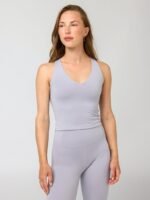 A full length, fitted v-neck tank made in luxuriously soft and stretchy FLOAT fabric. Oh, and it has a built-in bra to offer medium impact support for whatever workout you told yourself you were going to do today.