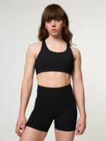 Sometimes you need the support, sometimes you need some space. The Simone High Support Bra is here for all of that. With adjustable elastic criss cross straps and an adjustable hook and eye closure, this bra will support you through your hardest HIIT class, but also loosens up in case, you know, you aren’t doing a HIIT class. It also has structured, sewn-in interior cups that are recycled, recyclable and provide some added padding.Â