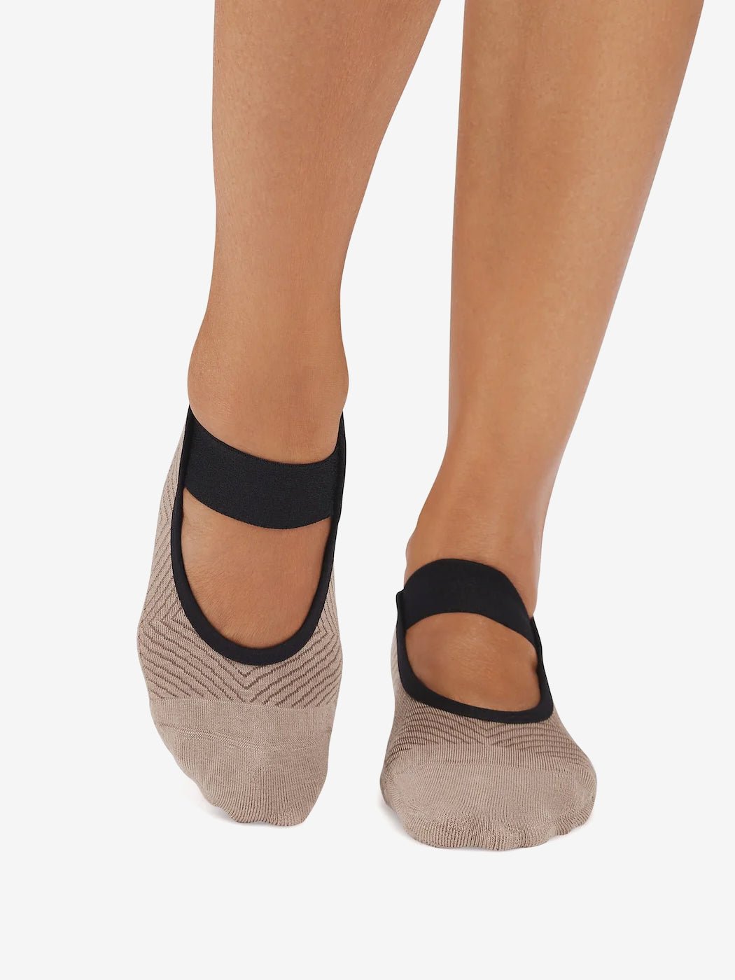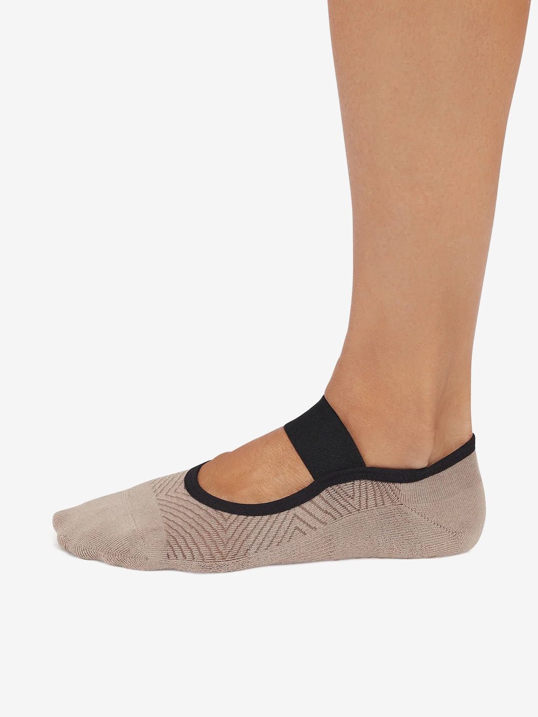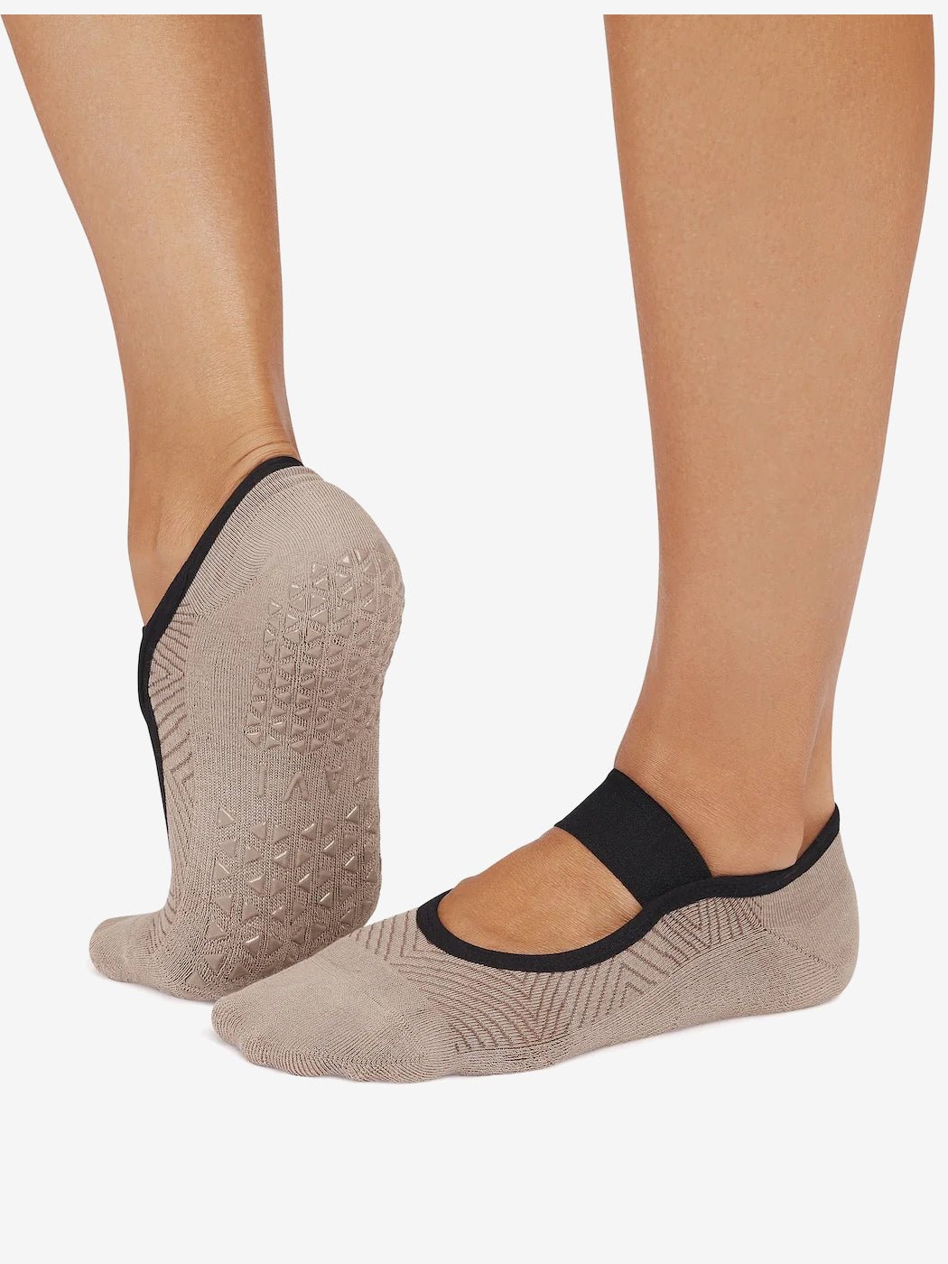 Introducing Tavi Noir Lola Grip Socks with a single mesh band that falls across the top of the foot. The low design hugs the foot just below the ankle while Tavi’s stellar grip sock pattern safely moves you through your barre, Pilates and yoga classes.