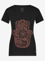 The Hamsa organic core yoga tee is not only functional but also stylish and versatile. The minimalist design pairs perfectly with yoga leggings or pants and looks just as effortless off the mat.