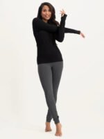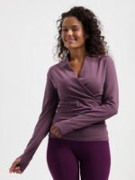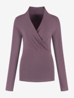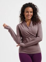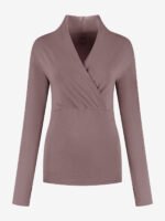 The Ishtar Sustainable Yoga Long Sleeve Top features an elegant V-neck, high collar, and feminine pleats. Made from breathable organic cotton with lycra, it offers comfort and flexibility. Thumbholes keep the sleeves in place during your practice. Inspired by the goddess Ishtar, this top embodies both grace and strength.