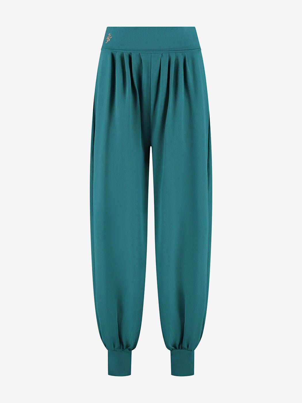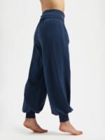 The Rhea yoga pants are stylish yoga pants with a loose fit. They have a fine wrap-around waistband and ankle cuffs that keep the pants in place. The soft wrap waistband allows you to style the trousers the way you like: high-or low-waist, whatever you like best!