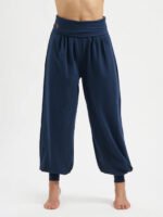 These wide yoga pants are made of Urban Goddess’ signature brushed fabric with 92% certified organic cotton. This makes the fabric super-soft to the touch and less likely to heat up during your practice. The addition of lycra also makes for a stretchy fabric that moves with you in every asana.