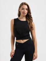 The Veyra Knot Yoga Tank is a stylish and comfortable yoga top with a flattering front knot and soft waistband. Made from organic cotton and lycra – breathable, stretchy, and gentle on skin. The relaxed fit and feminine twist make it perfect for yoga and everyday wear. Sustainable, elegant, and totally in flow.