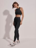 A longline bra from Varley with high neck, racer back, removable cups and smoothing hem band.