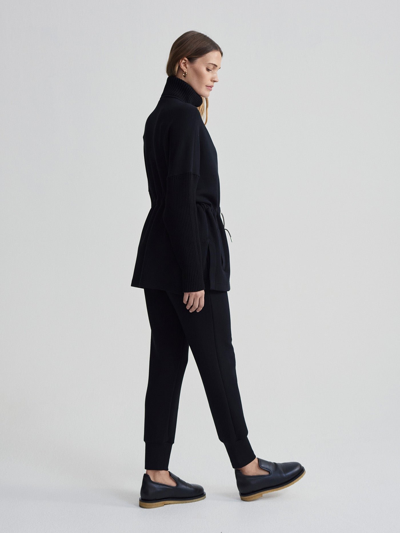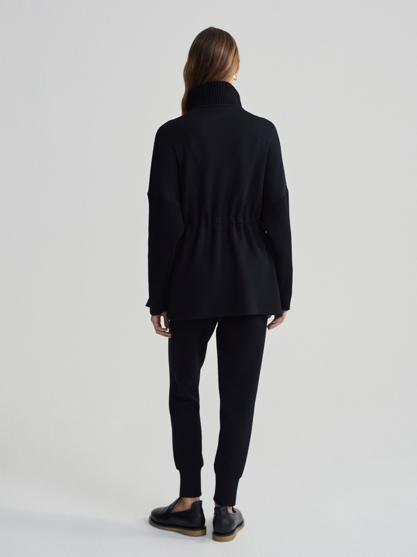 Combining their signature DoubleSoft® fabric with a rib-knit neckline and sleeves, this oversized layer offers a perfect blend of style and comfort. Features include a double-ended zip, high neck, and adjustable waist cinch.